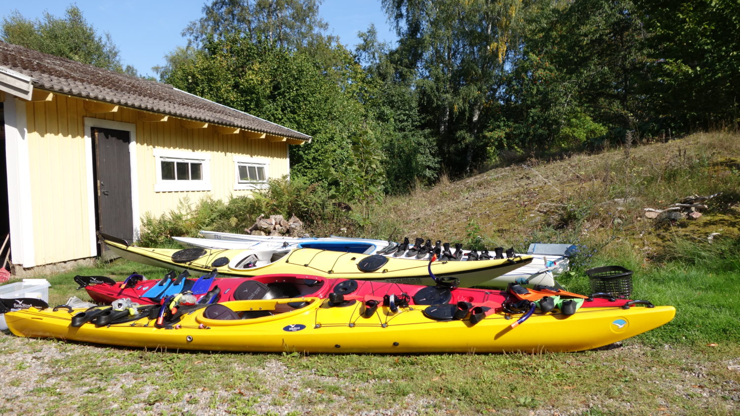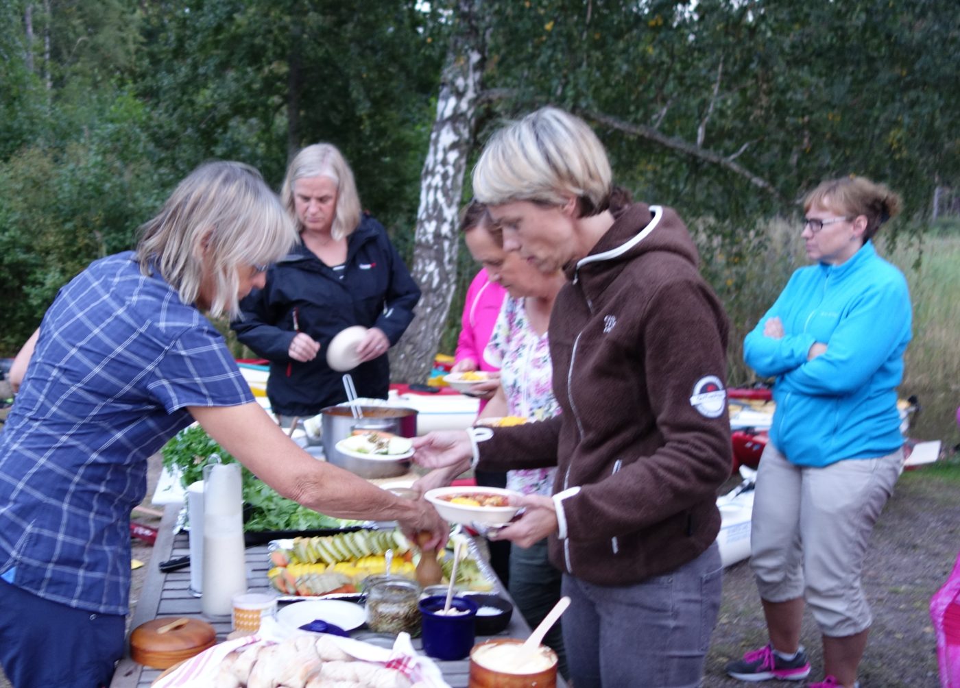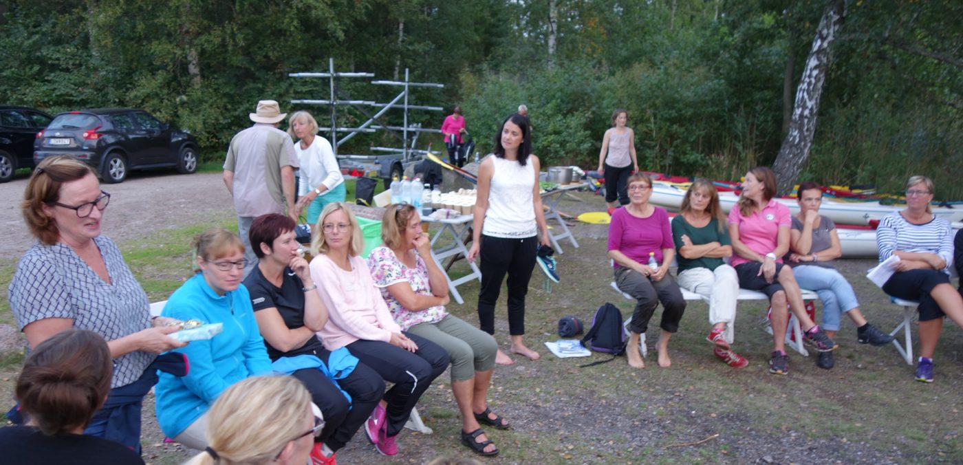 Can it be a better option than starting up work after holidays in nature together with collegues?Activities, friendship, nice food, open fire and laughther. About 45 expectant people met at Medevi brygga – lake Vättern a nice summer evening. The kayaks and snorkelling gear (cyclops, fins and wet suits) were ready. Envelopes with instructions and maps for the hikers waited for the groups to set off. Ready for appetisers and their chosen activities all went away.