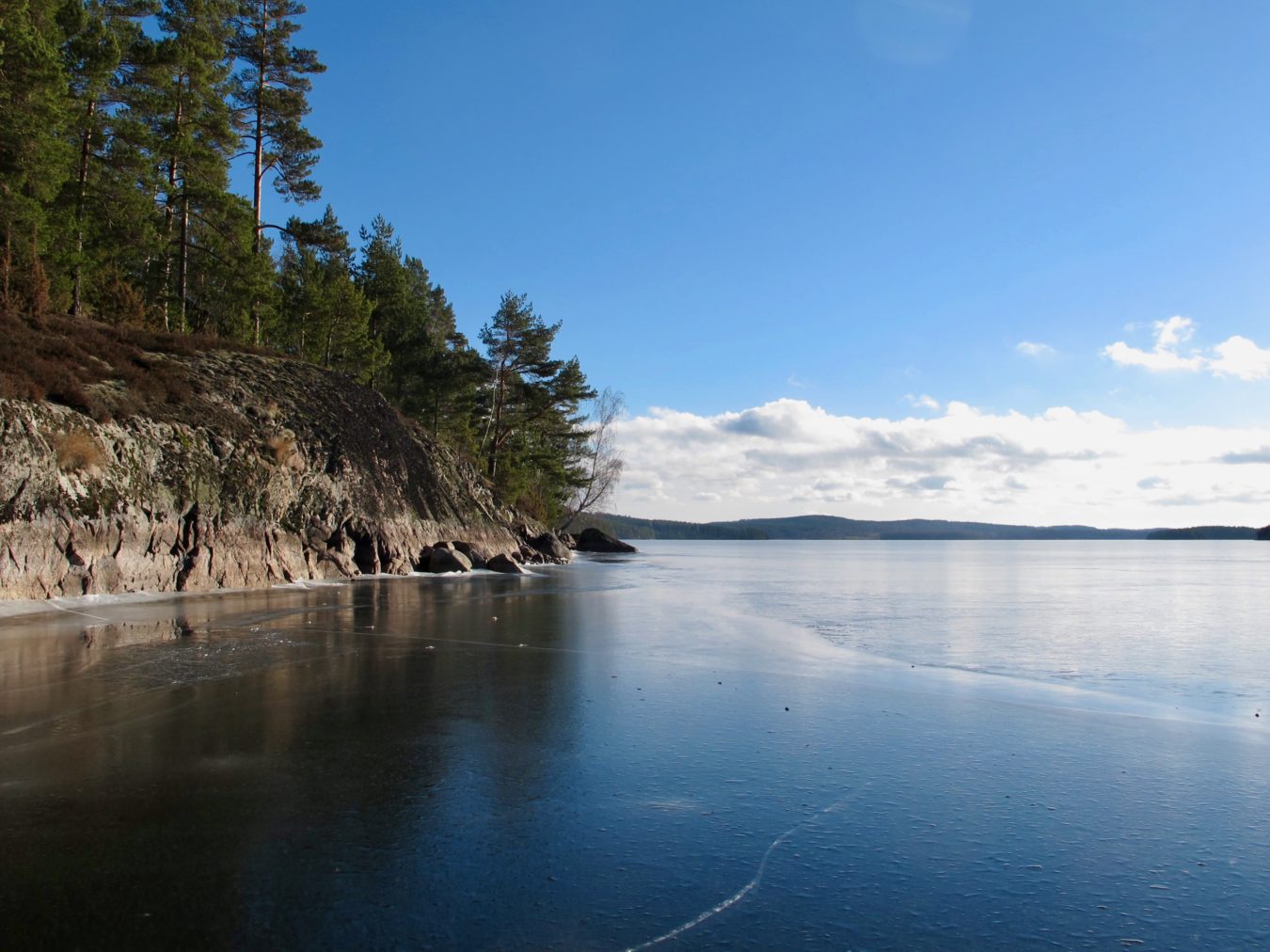 Sommen – a lake in the borderland of Östergötland and Småland – with an area of 132 square kilometers and as many islands as the number of days of the year. Formed as a shape of an octopus. The tale tells that the lake is created by the hoof of the prehistoric cow. With miles and miles of untouched shorelines. To skate in the numerous bays, over ice of clear waters and under steeps is an adventure. In summer lake Sommen is an eldorado for all kinds of outdoor life but now in winter you can experience the total tranquility.
