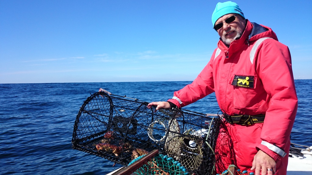 Rough weather with a lot of wind prevented us the next days to get out to get our catch – but suddenly one day with little wind made it possible to get out again. The wind had stopped but the waves out there were about 3 metres high. The result was 9 crabs, one little flounder and one LOBSTER! Now we have to wait until the first Monday after the 20th September when it is allowed to catch lobster again!