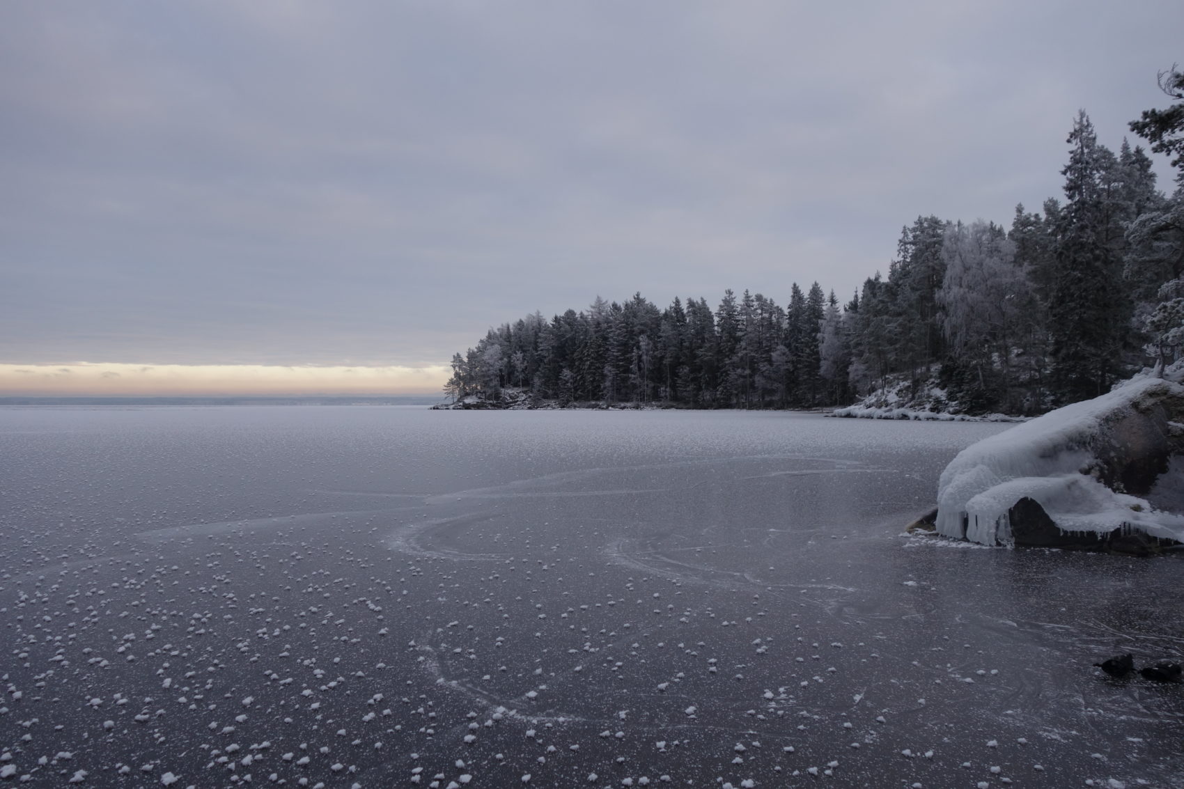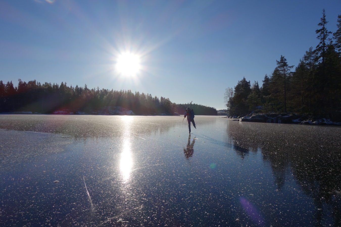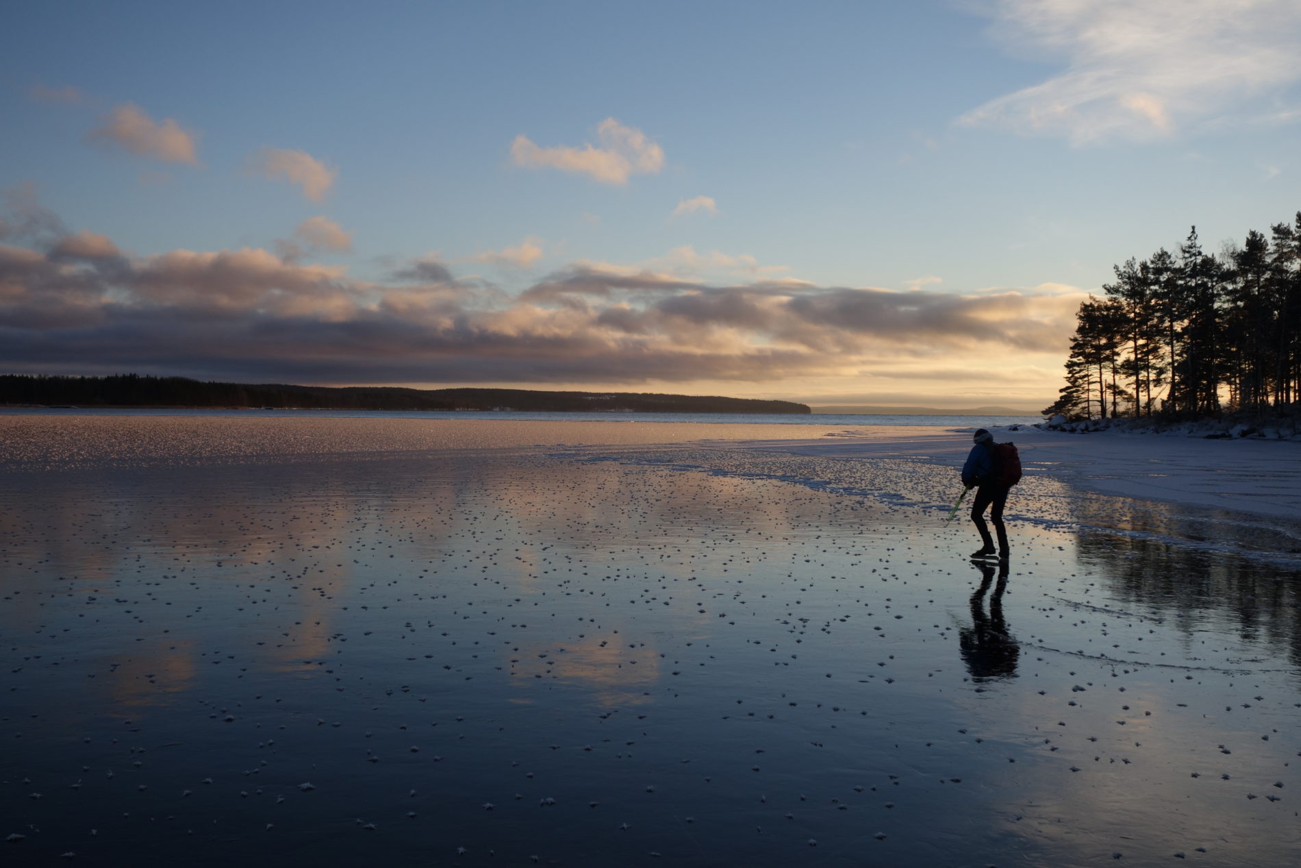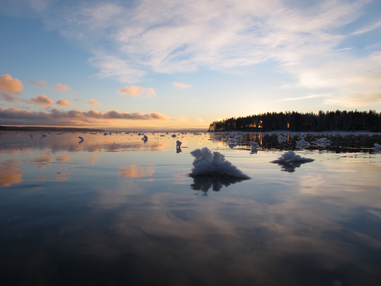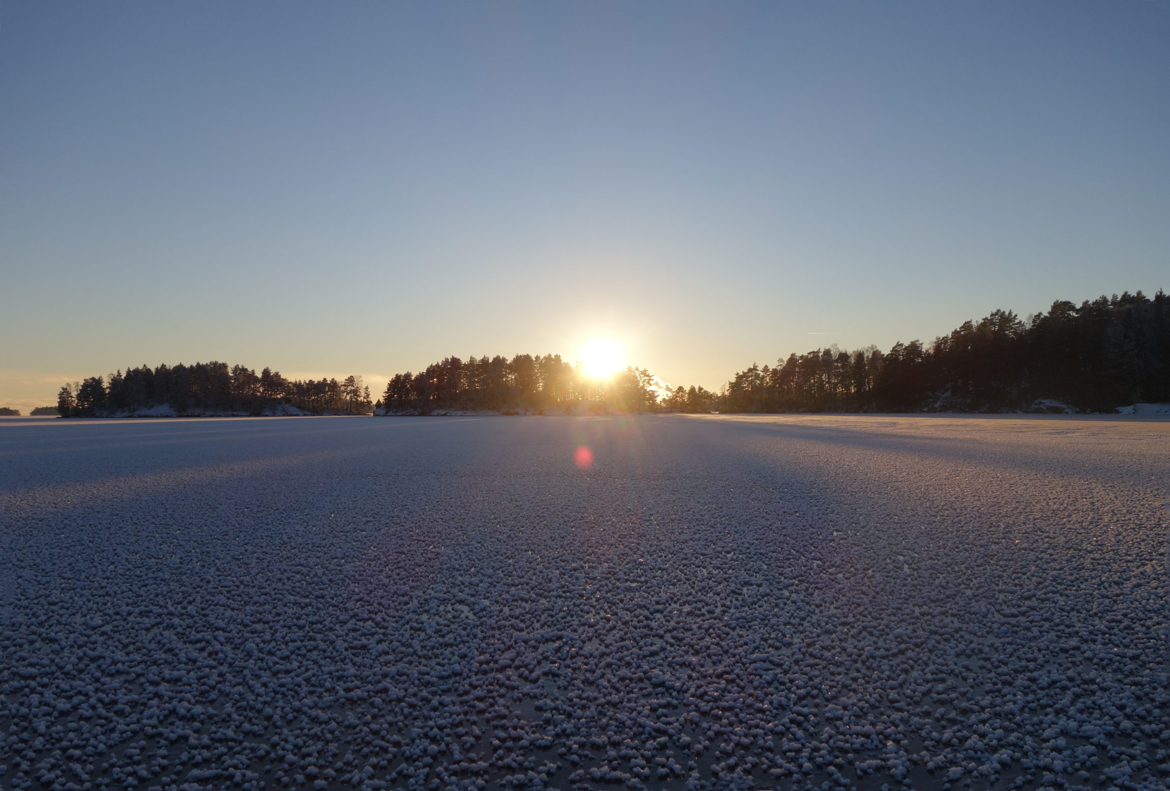 Follow the ice covering process on two of our favorite fresh water lakes in southern Sweden – Lake Vättern and Lake Unden. The photo galleries show last week’s trips on these lakes. We filled our senses with deep impressions from dusk to dawn. Different ice conditions challenged our minds to be alert and alive. The skating technique, pending from one side to another in a smooth rhythm offers great harmony. Starting from the shore on old thick ice covered with dense frostwork, finding our way on safe newer generations with smooth black ice out to the ice front with open water gives variety and a lot of adrenaline.