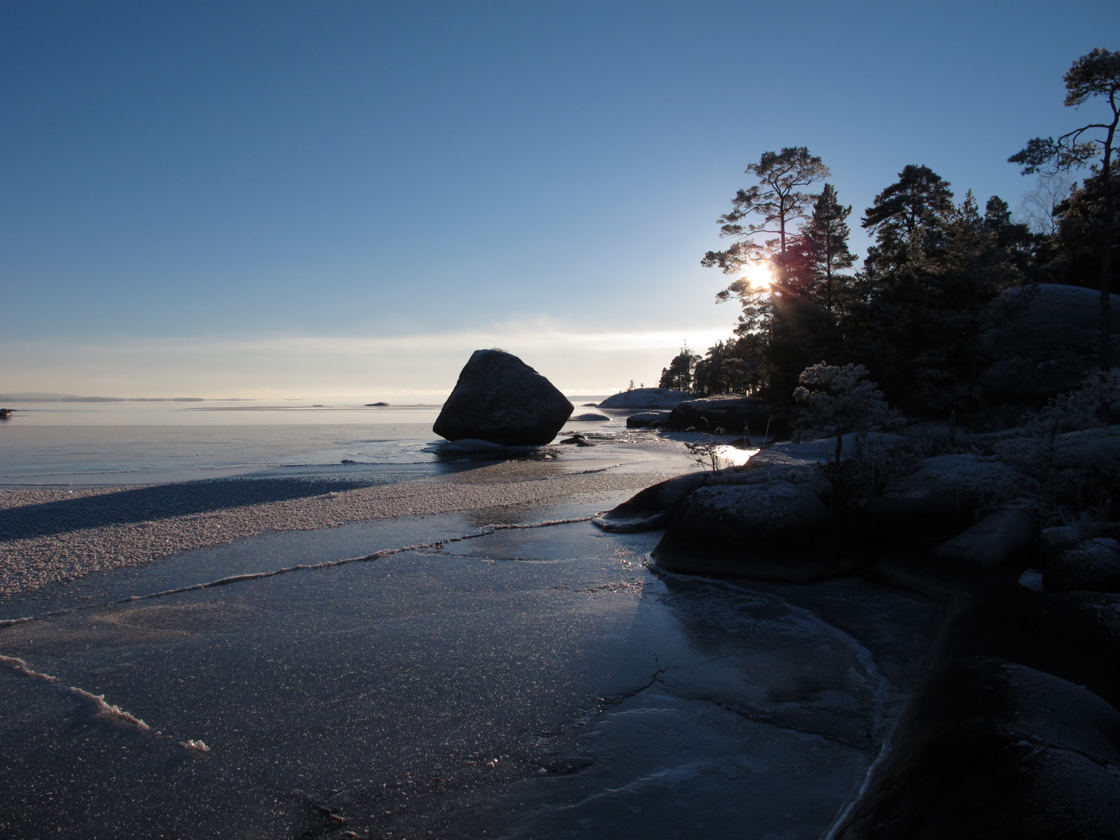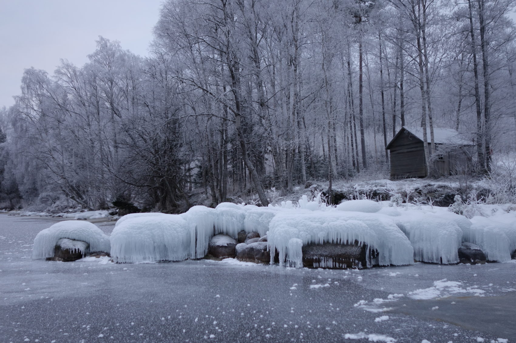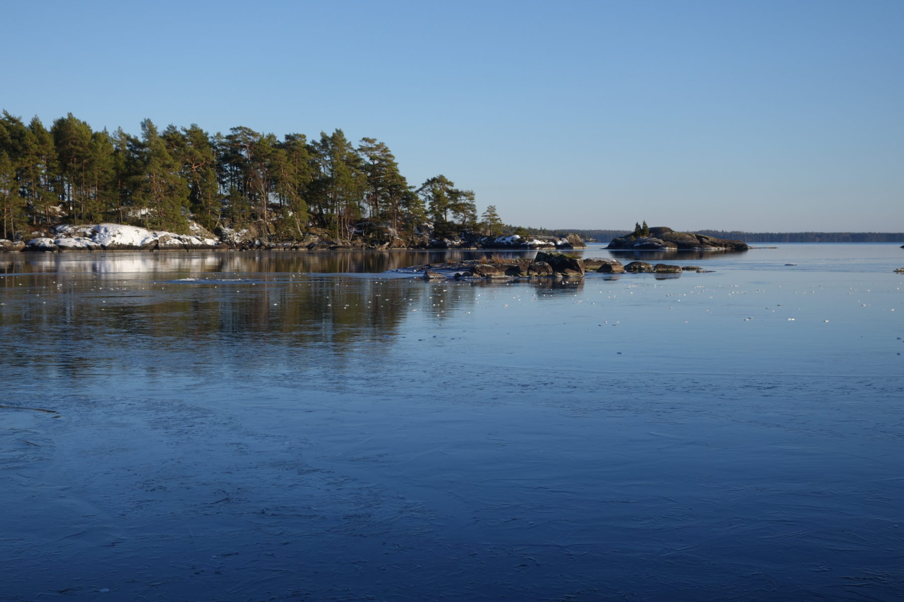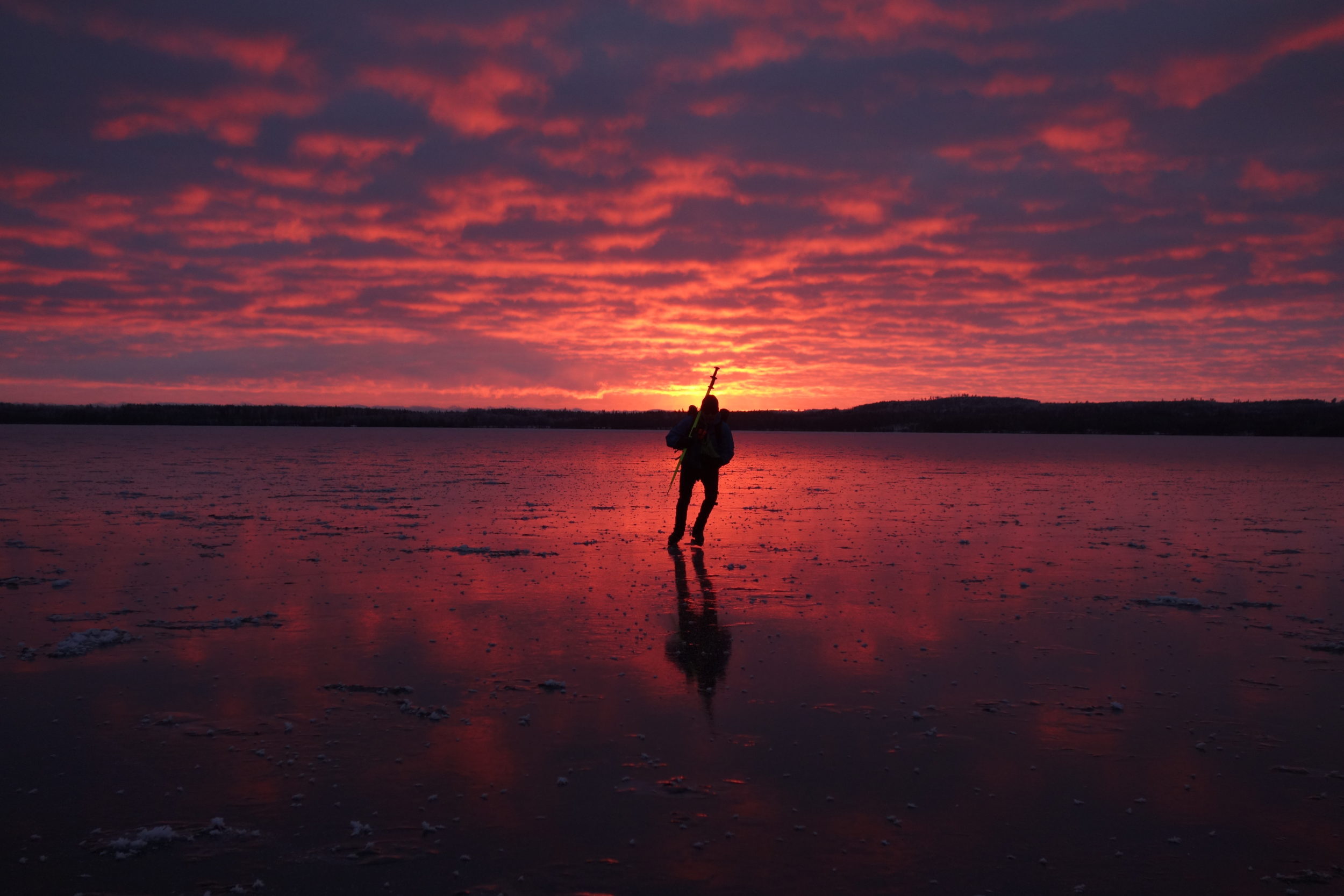 Follow the ice covering process on two of our favorite fresh water lakes in southern Sweden – Lake Vättern and Lake Unden. The photo galleries show last week’s trips on these lakes. We filled our senses with deep impressions from dusk to dawn. Different ice conditions challenged our minds to be alert and alive. The skating technique, pending from one side to another in a smooth rhythm offers great harmony. Starting from the shore on old thick ice covered with dense frostwork, finding our way on safe newer generations with smooth black ice out to the ice front with open water gives variety and a lot of adrenaline.
