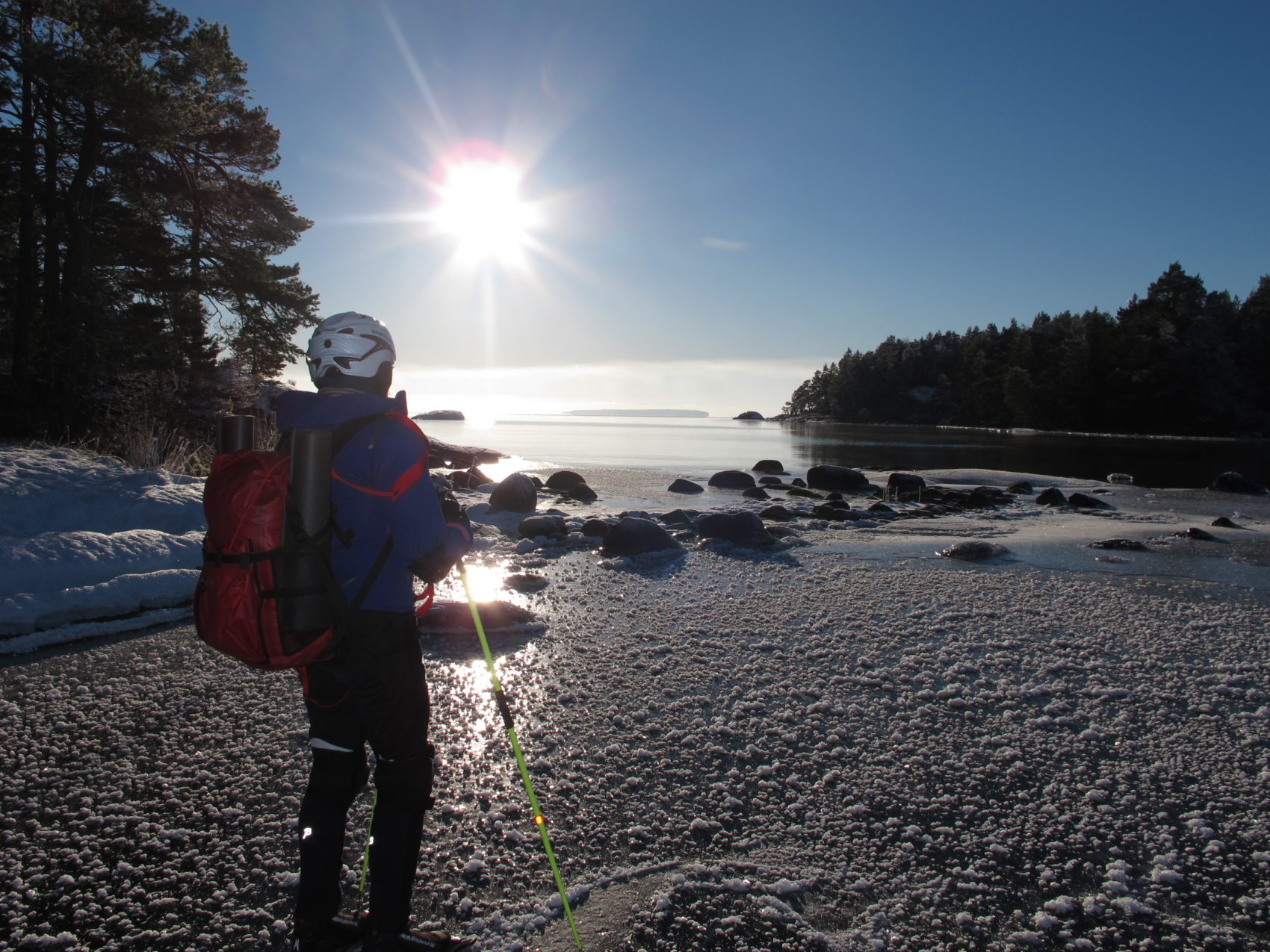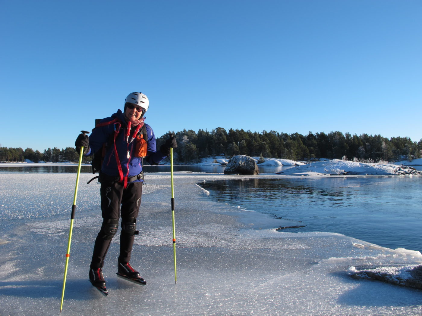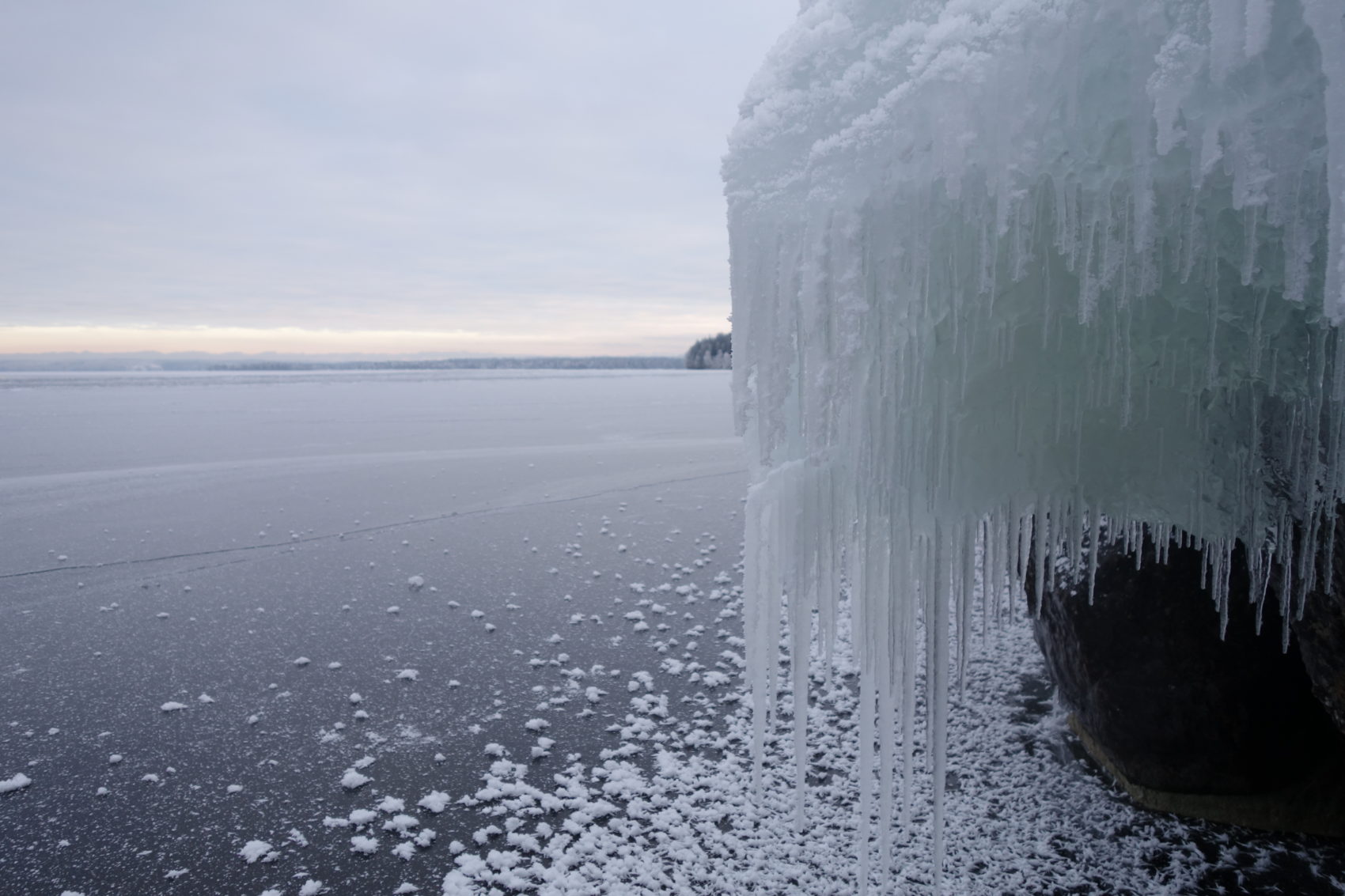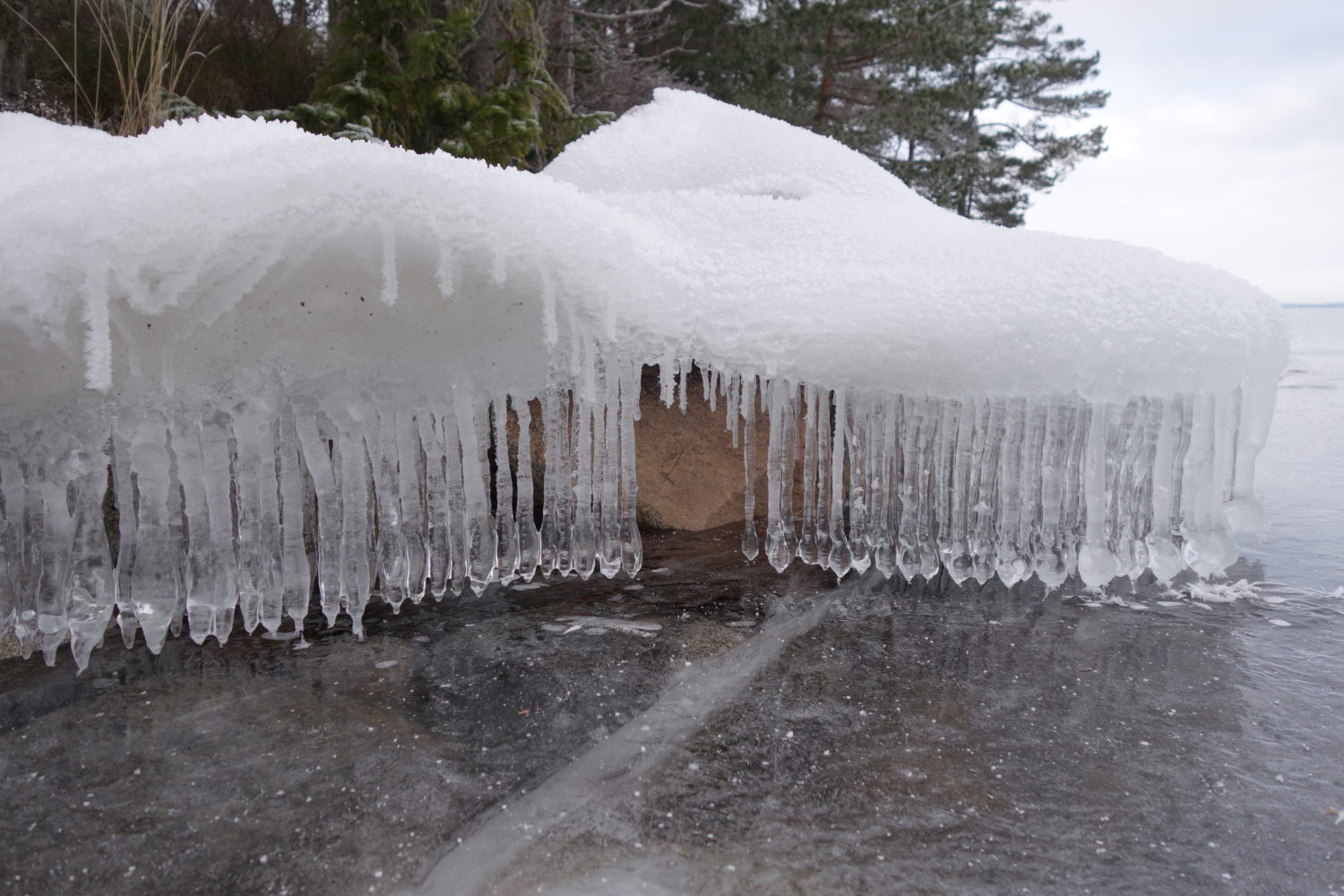 Follow the ice covering process on two of our favorite fresh water lakes in southern Sweden – Lake Vättern and Lake Unden. The photo galleries show last week’s trips on these lakes. We filled our senses with deep impressions from dusk to dawn. Different ice conditions challenged our minds to be alert and alive. The skating technique, pending from one side to another in a smooth rhythm offers great harmony. Starting from the shore on old thick ice covered with dense frostwork, finding our way on safe newer generations with smooth black ice out to the ice front with open water gives variety and a lot of adrenaline.