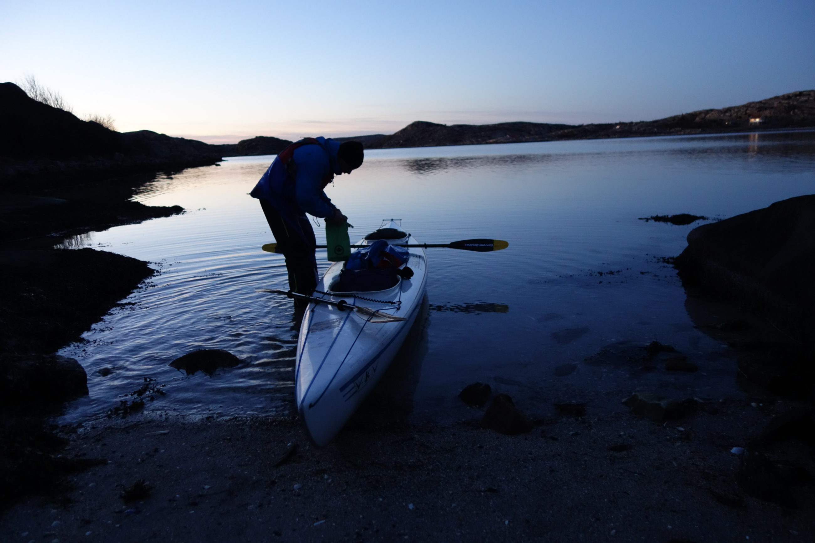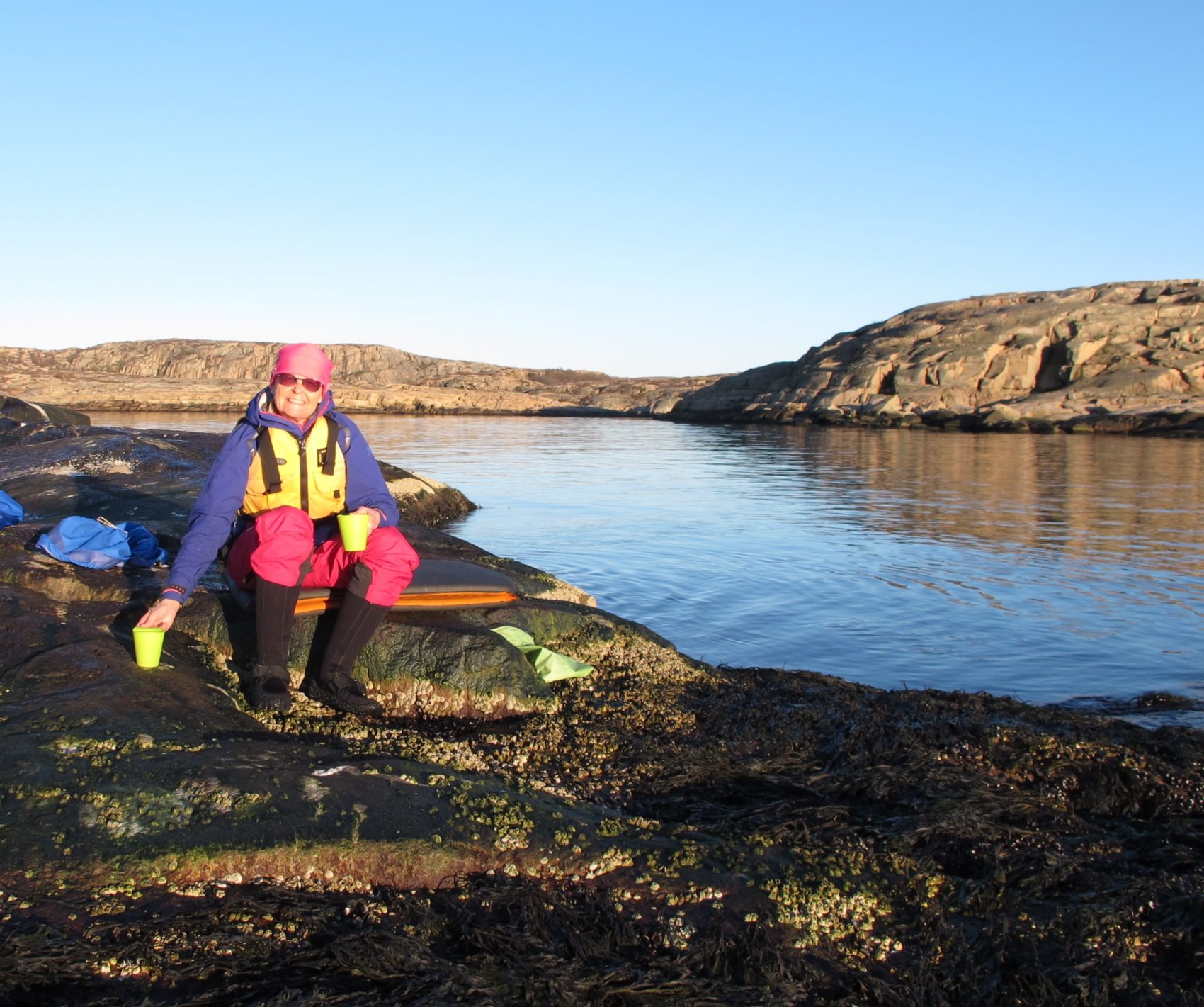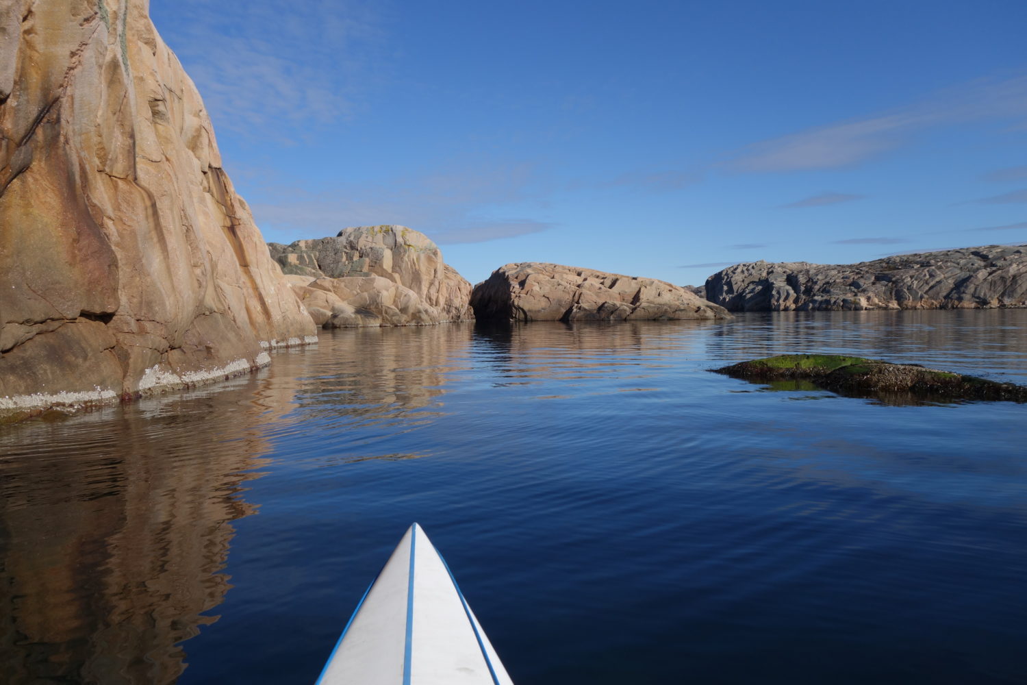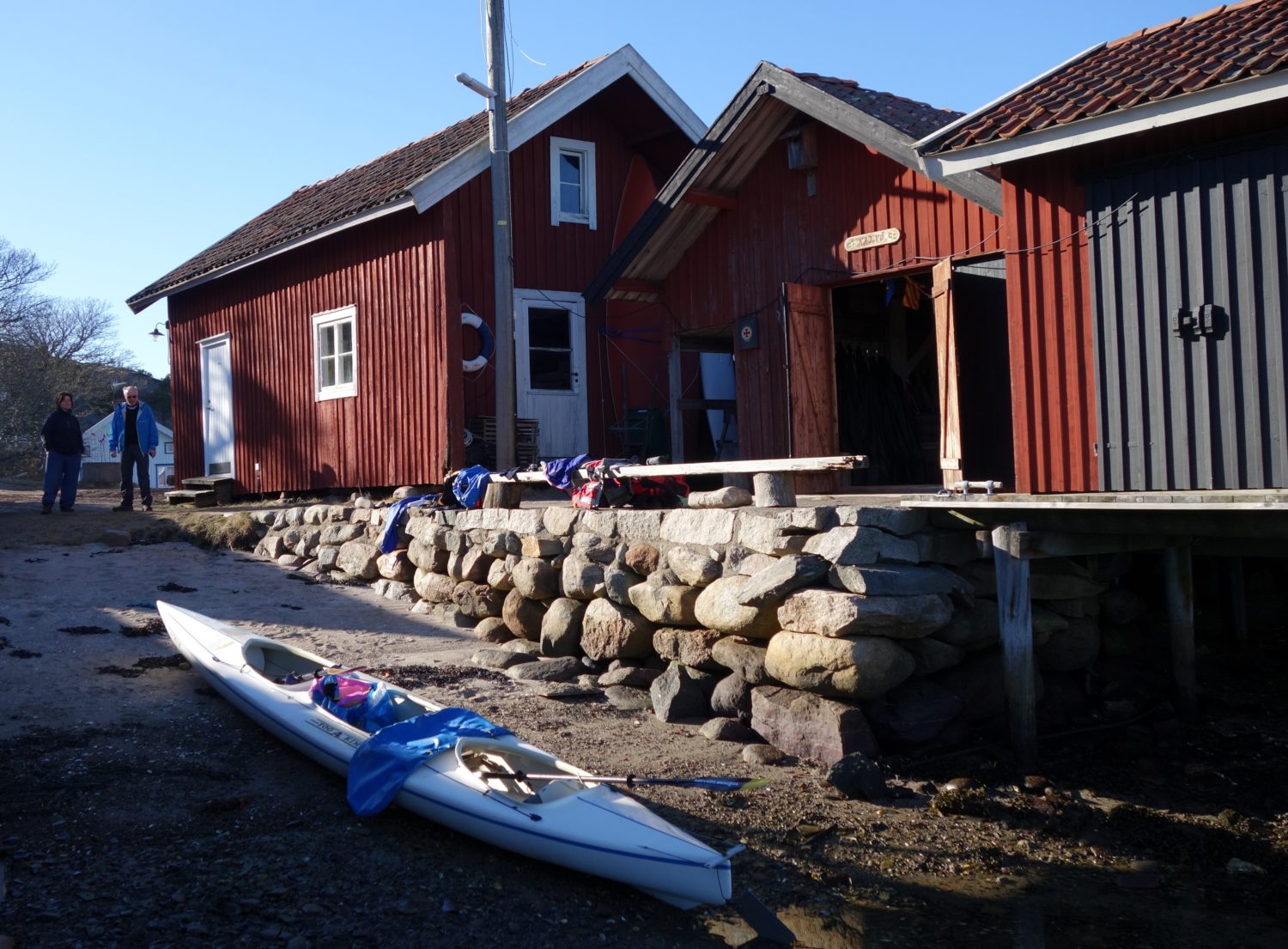 Today’s destination was Kalvö, an idyllic island south of Fjällbacka in Bohuslän. Here the landowners nurse oyster banks, which have been there for generations. We started in the morning from Heestrand in excellent weather conditions for paddling and birding. The sea was calm and the sun was shining. Accompanied only by the sounds from the water and returning migratory birds we felt one with nature. Hundreds of eiders were calling, guillemots and black guillemots showed up, the oyster catchers were busy in the sky, on rocks and reefs, the different geese quacked all around. We stopped for a while to study the raven’s nest high up in a cliff. They lay their eggs in the end of February, so hopefully there are new lives waiting in the nest.