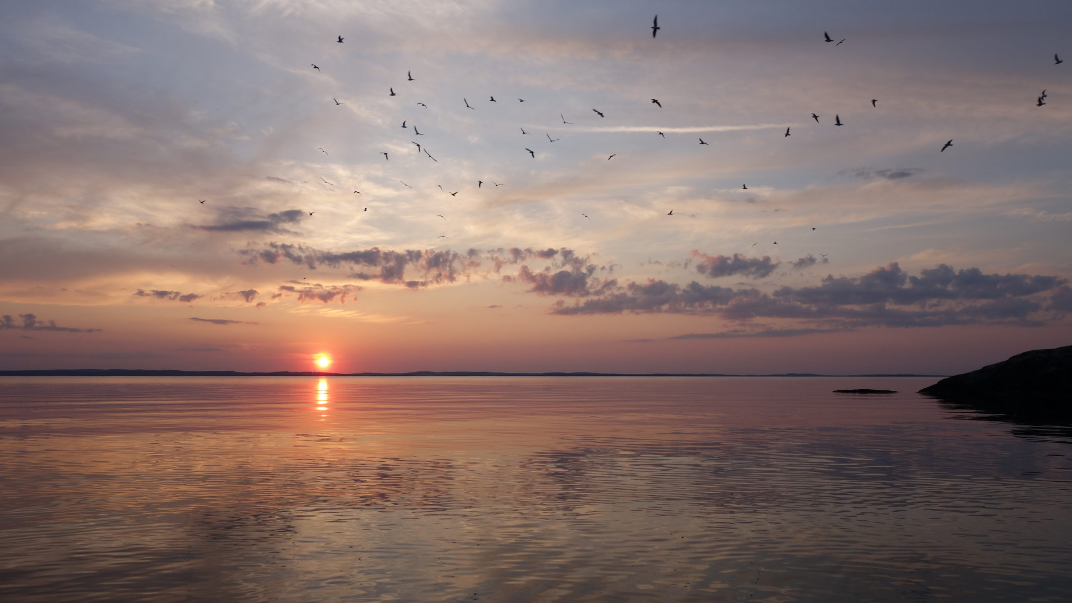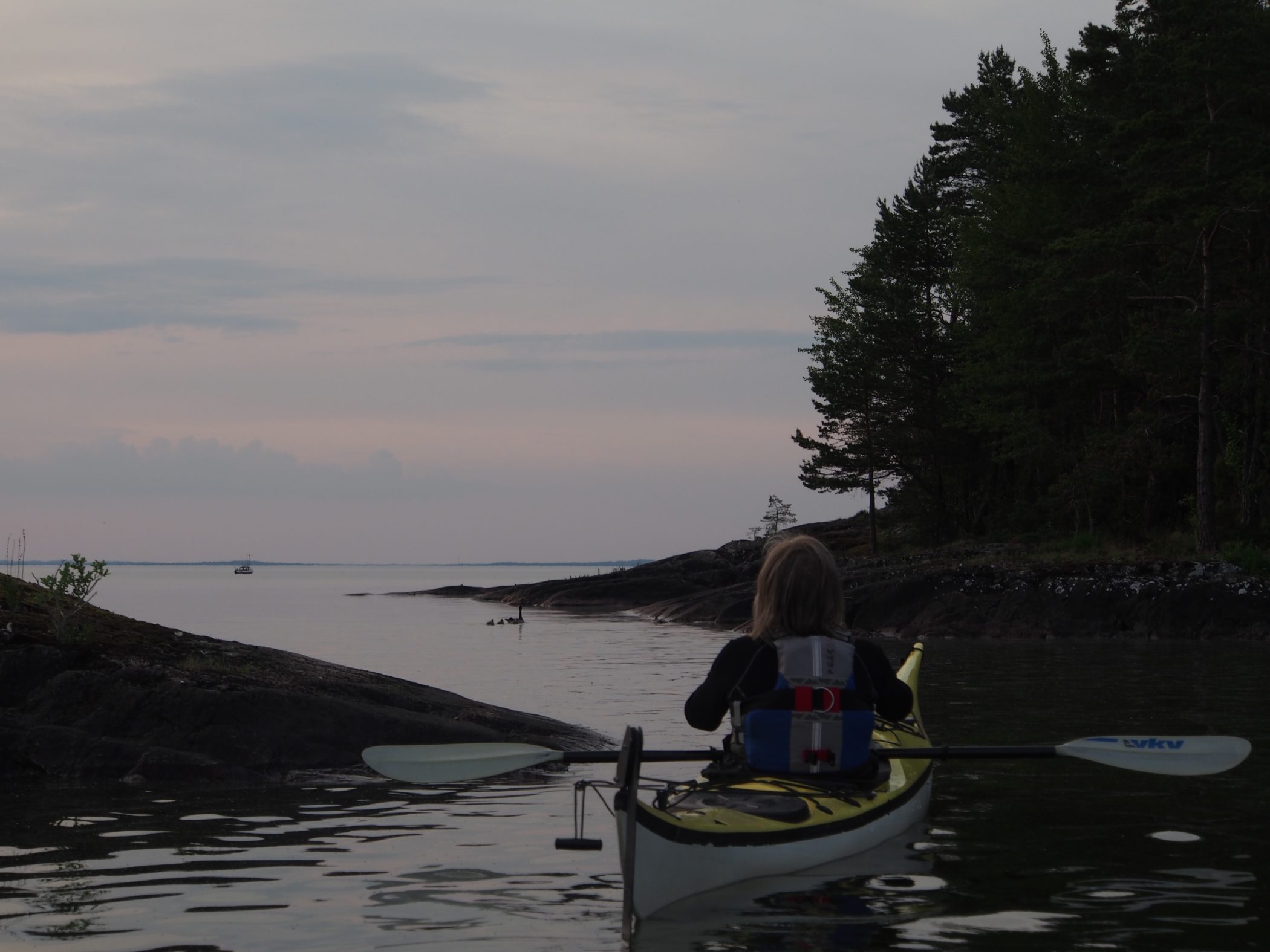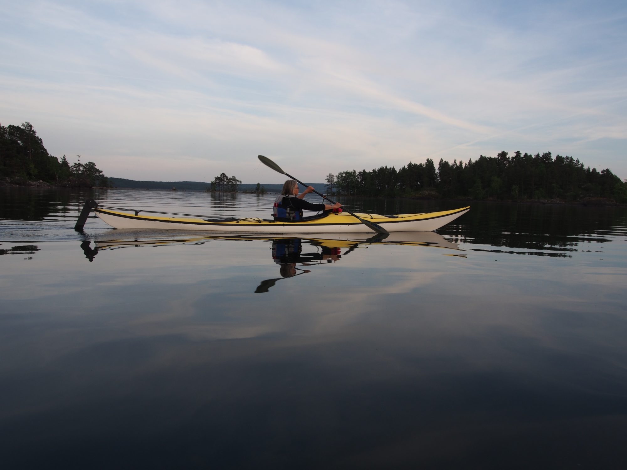 The beginning of June offered many stunning evenings with calm water and pleasant temperature in the air. Perfect for kayaking! Lake Vättern is the second biggest lake in Sweden. It is wellknown for the transparency of the water. Out on the lake the water is drinkable. Starting point for our evening trips in beginning of June was Medevi Brygga, situated