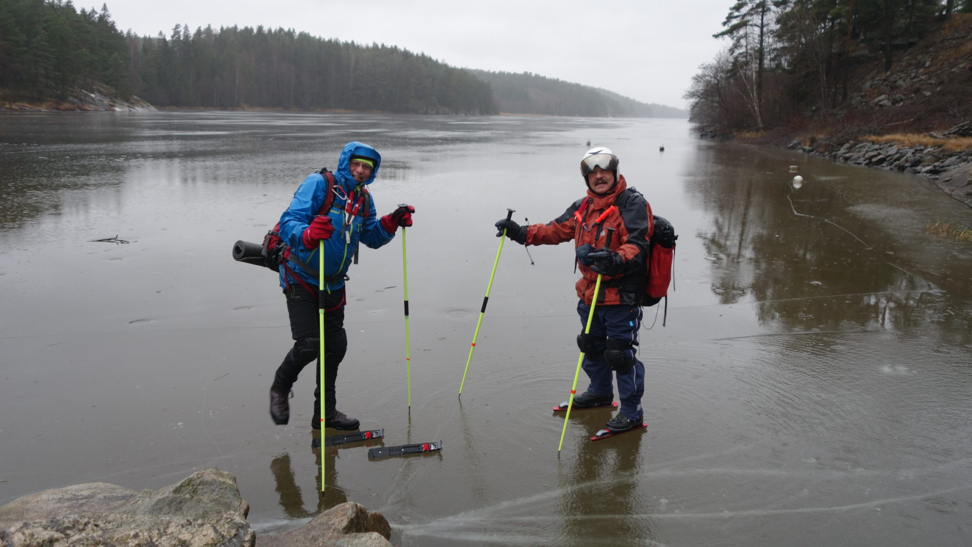 After a short skating we went into our car to check more ice inland. Unfortunately it was snowing, so the desicion to go back to lake Vansjöen next day was right. We were a bit worried that there should be “overice” but the surface was hard, solid and dry. It couldn´t be better!