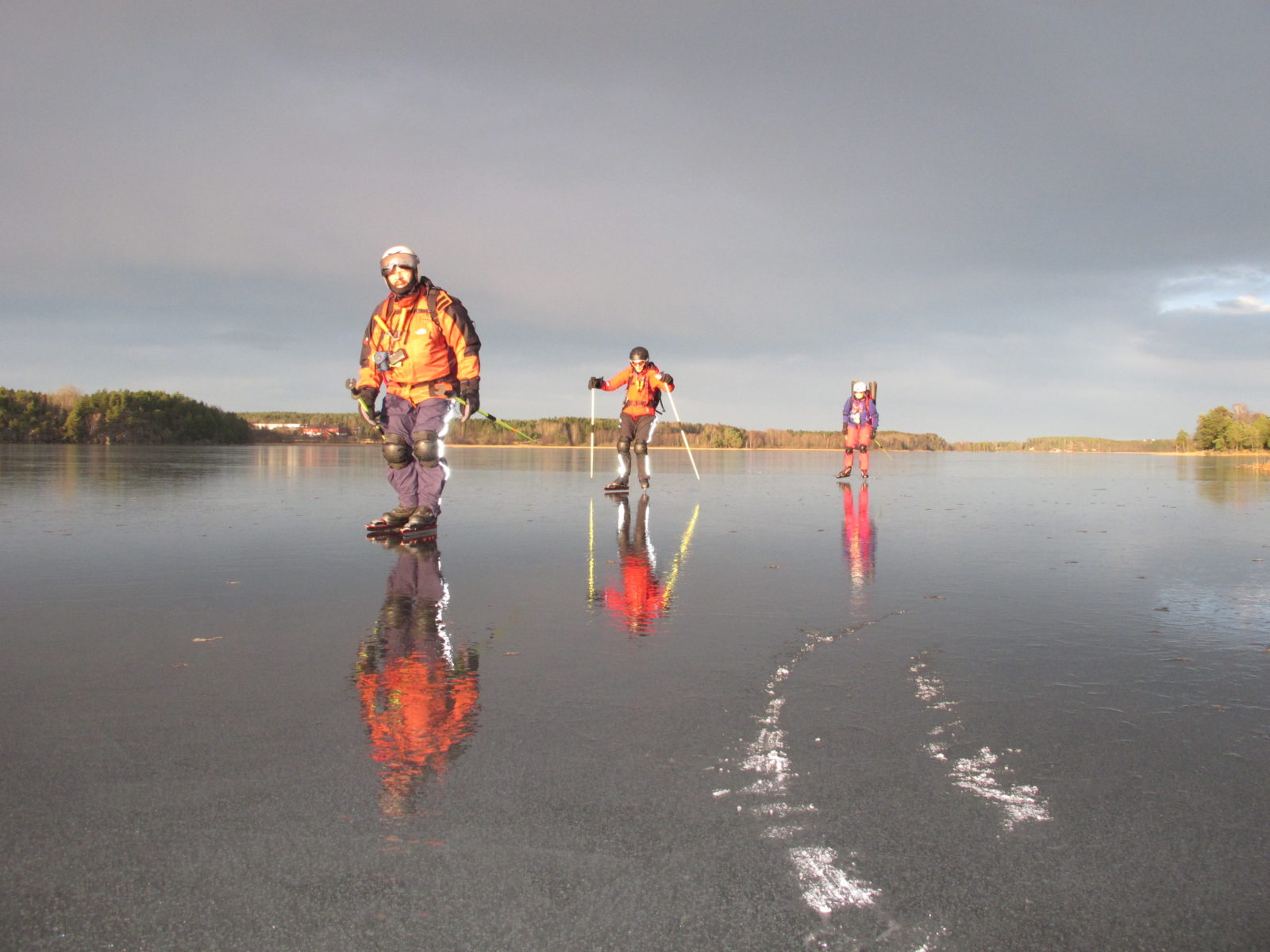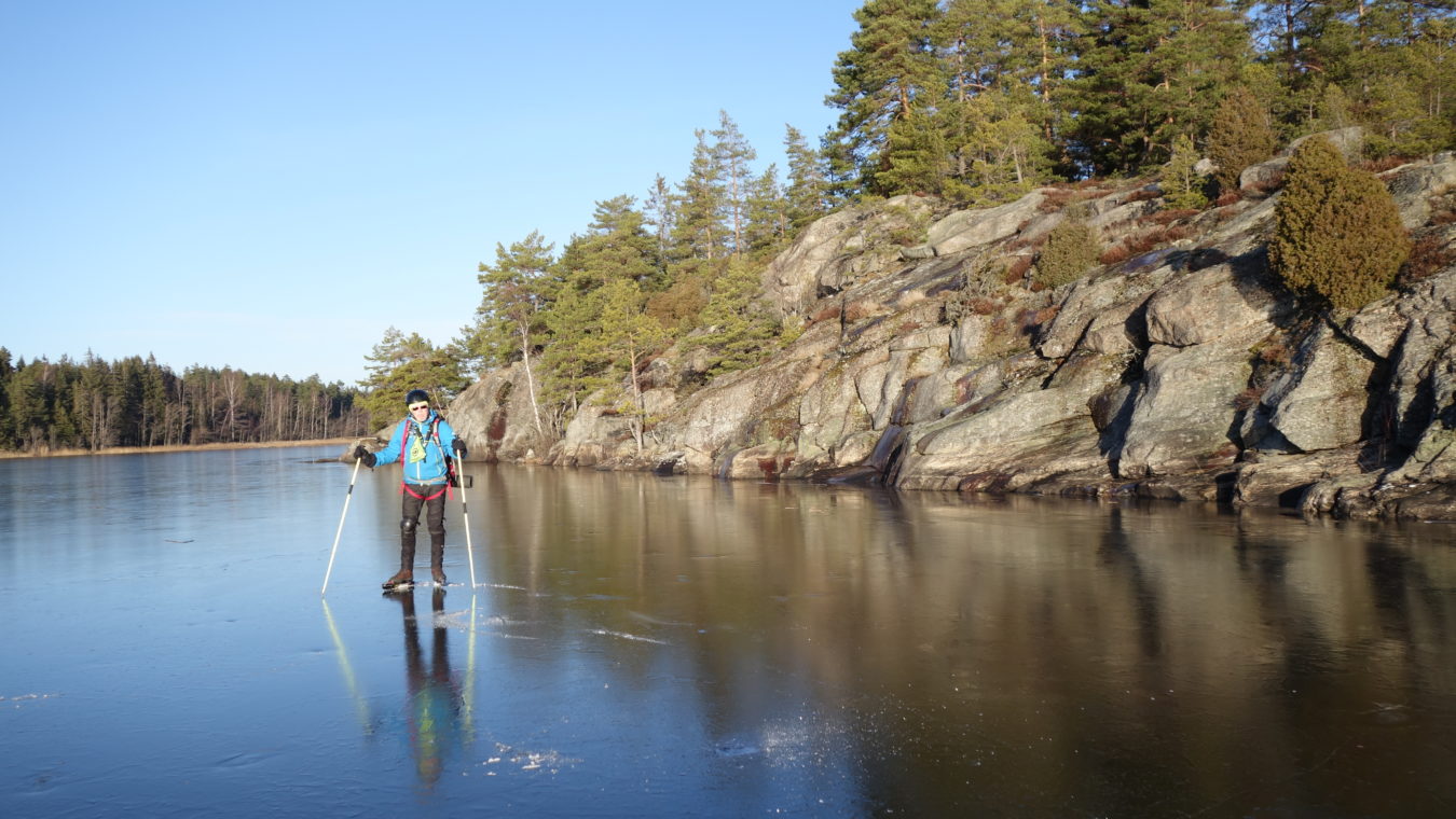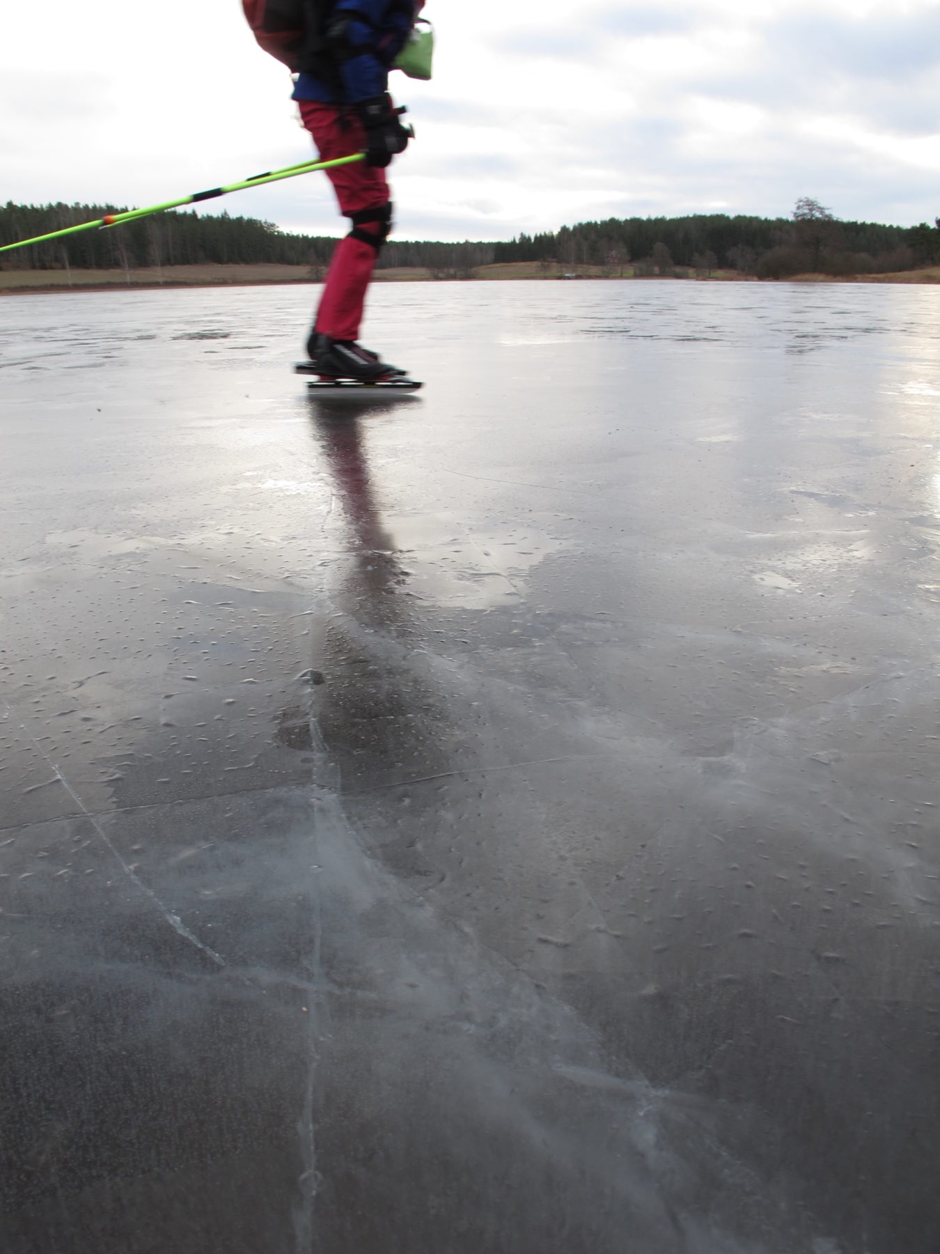 As we said the first days – it can only be better. And it did! Some degrees below zero, almost no wind and blue sky. We went back to the same starting point as the day before hoping for even thicker ice after a cold night. We were right. Where we couldn´t skate yesterday it was possible this day. But as always – we had to watch out. After so heavy rains the water has to flow out in the sea and there are many exposed places where to pay attention. Especially points and sounds.