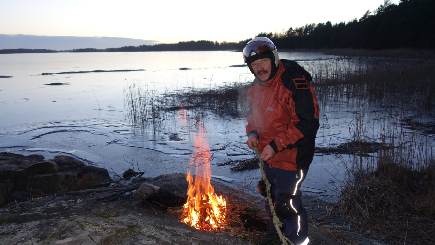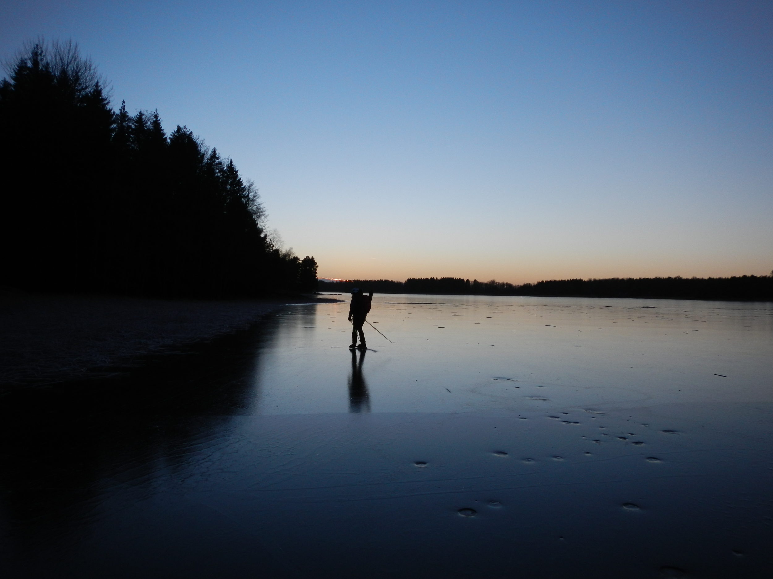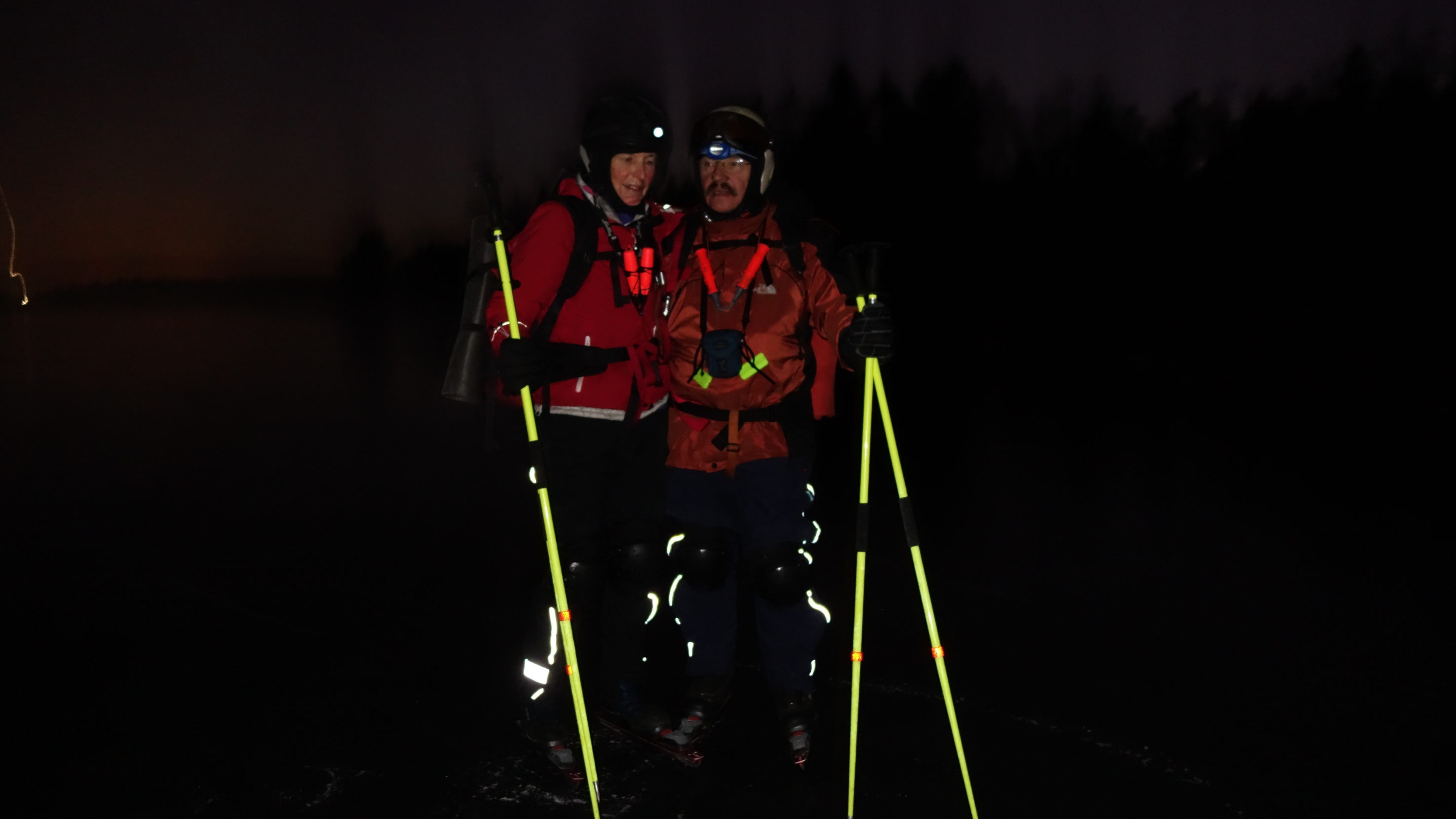 After a good time of skating we stopped for a break, had a nice fire and were waiting for the dark. It was full moon night. We waited and waited for the moonrise but the forest and the hills concealed the moon. We had a nice skating with our headlamps and arrived back to our car in dark. After less than 1 km we met the yellow, full shining moon. A good end of three wonderful days out on ice!